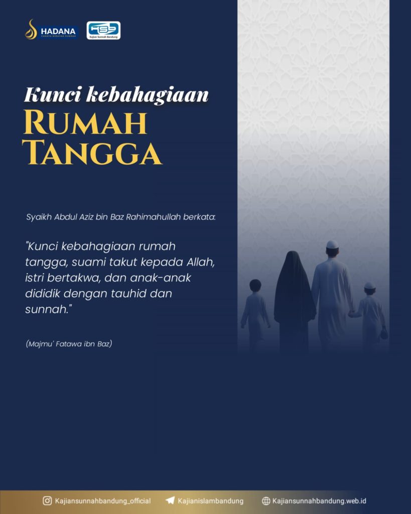 “Kunci kebahagiaan rumah tangga, suami takut kepada Allah, istri bertakwa, dan anak-anak dididik dengan tauhid dan sunnah.”