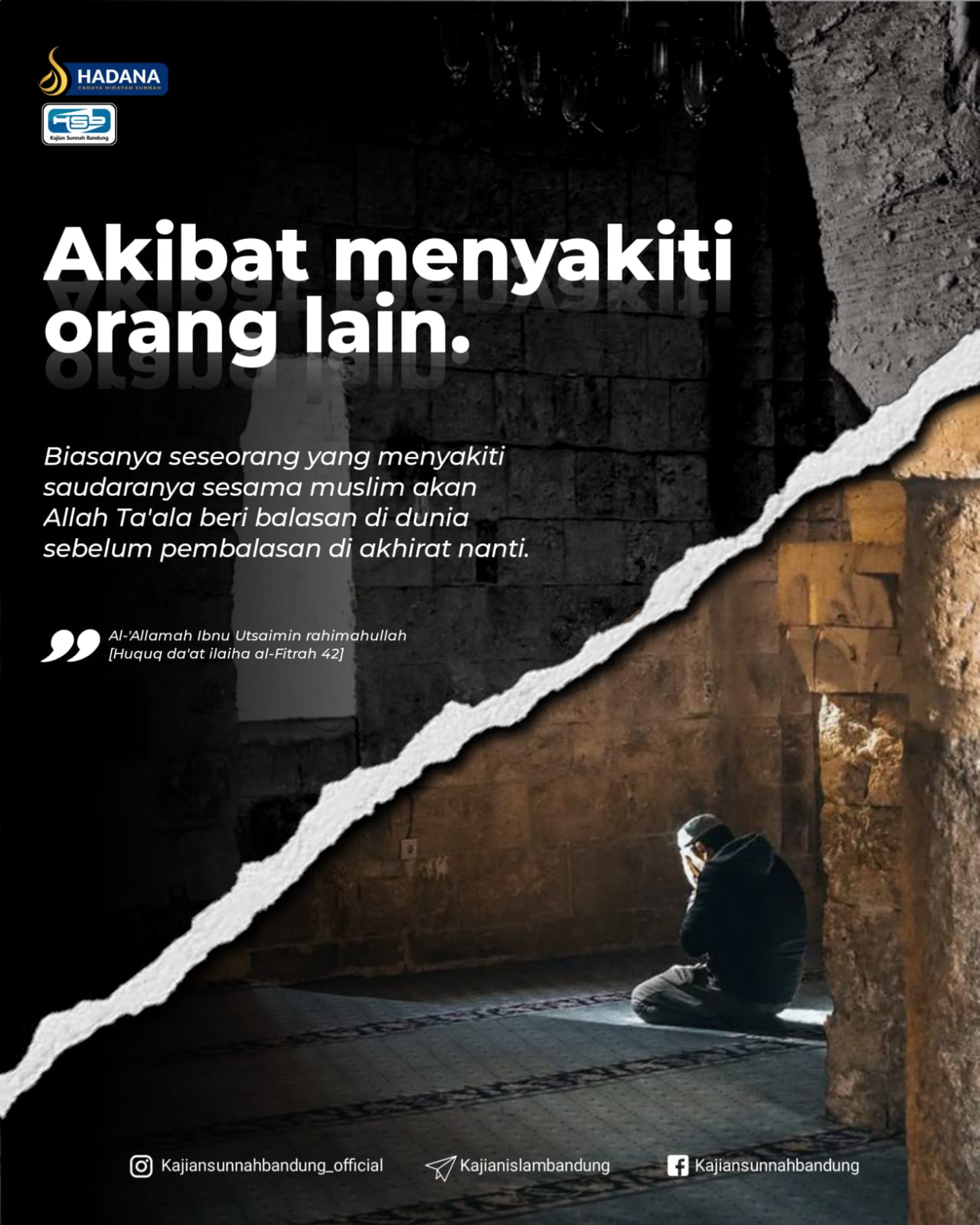 Bismillah, Akibat Menyakiti Orang Lain dalam Islam Al-‘Allamah Syaikh Muhammad bin Shalih Al-‘Utsaimin رحمه الله berkata: “Biasanya seseorang yang menyakiti saudaranya sesama muslim akan Allah Ta’ala beri balasan di dunia sebelum pembalasan…