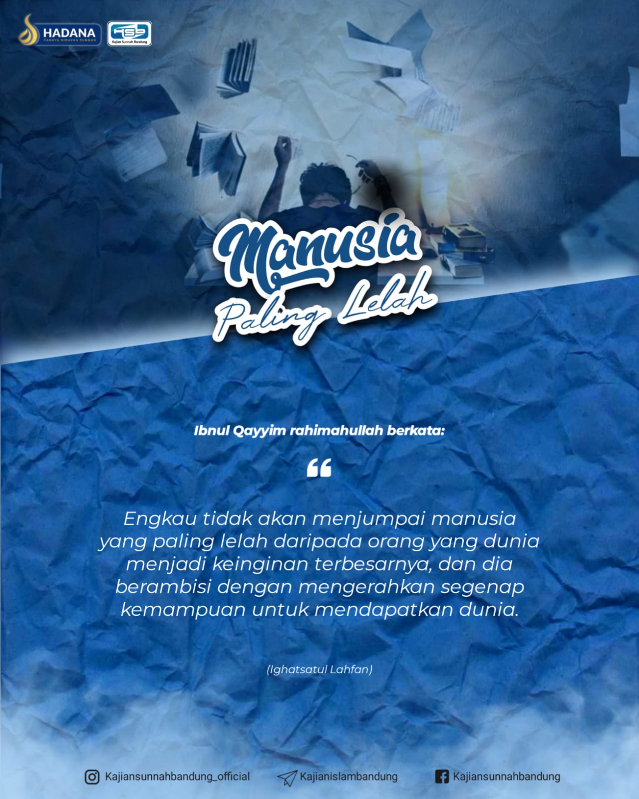 Manusia Paling Lelah: Mereka yang Dunia Menjadi Tujuan Utama Bismillah, Ibnul Qayyim rahimahullah berkata: “Engkau tidak akan menjumpai manusia yang paling lelah daripada orang yang dunia menjadi keinginan terbesarnya, dan dia berambisi dengan…